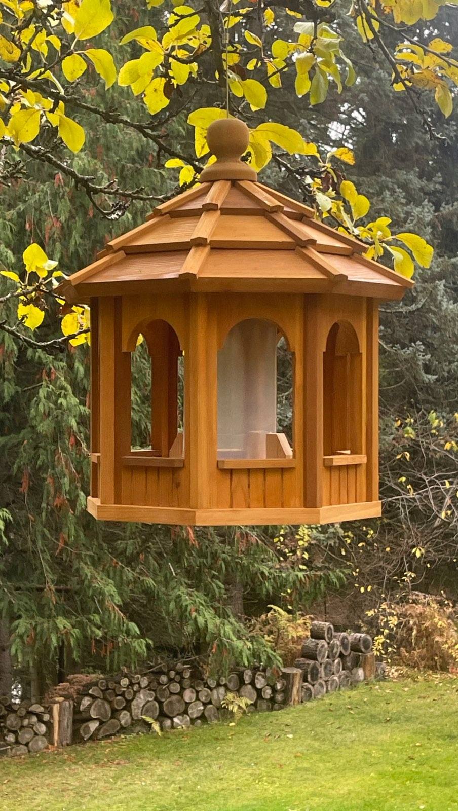 Every bird feeder is carefully handmade using 100% locally sourced Western Red Cedar. Built to last, built with pride.